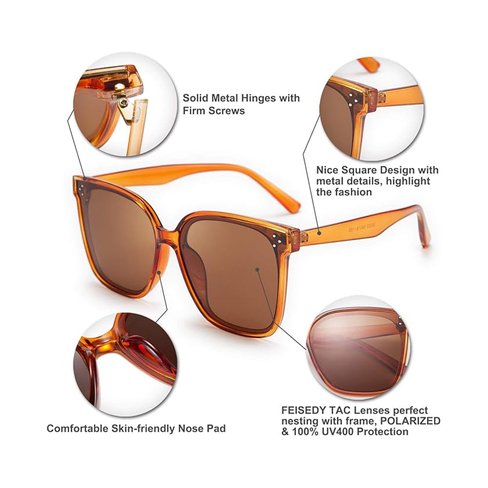 • Oversized Polarized Sunglasses - UV400 Protection, Square Fashion Sun Glasses for Outdoor