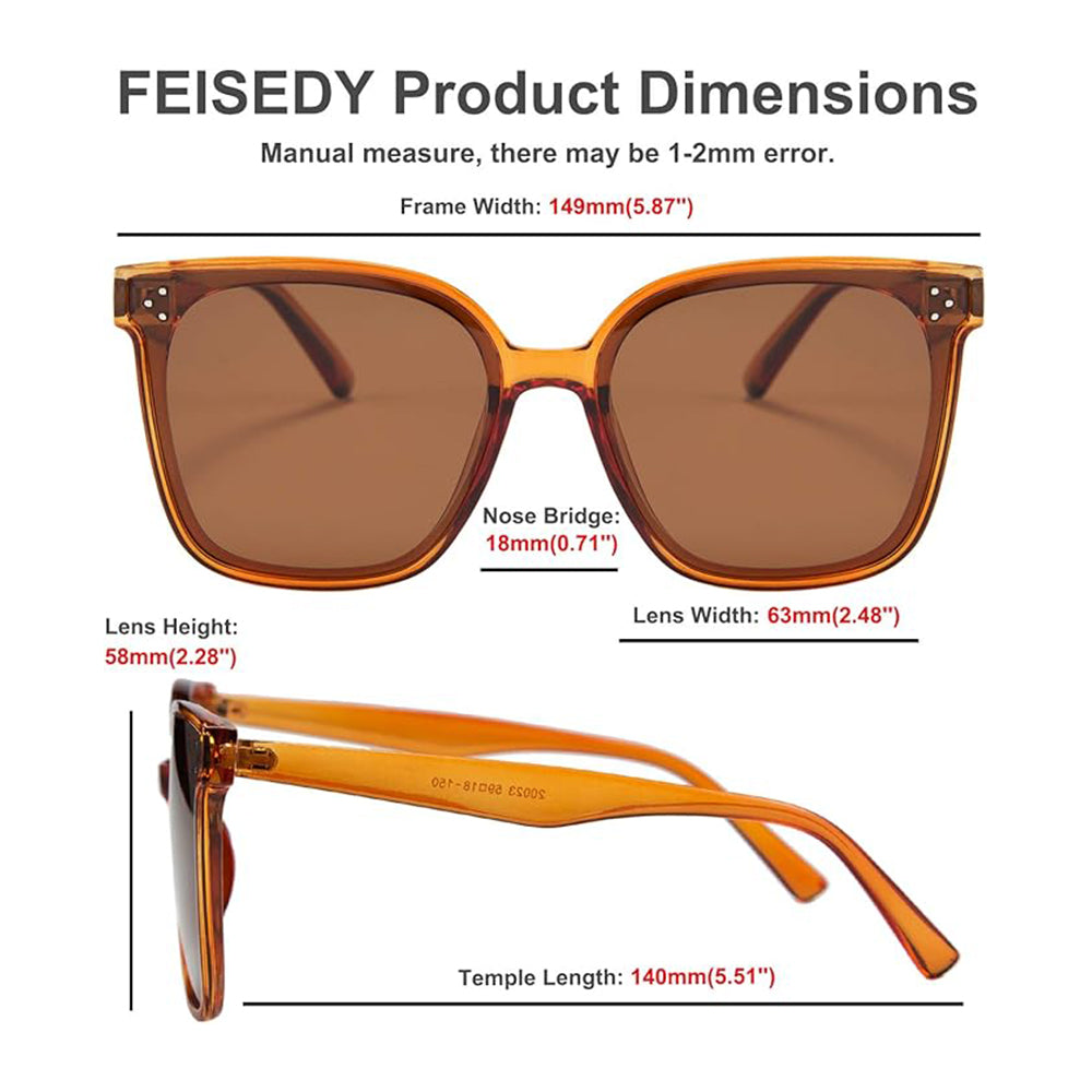 Product Dimensions -- Lens Width: 63mm(2.48''), Lens Height: 58mm(2.28''), Temple Length: 140mm(5.51''), Nose Bridge: 18mm(0.71''), Frame Total Width: 149mm(5.87''). Attention: Manual measure, there may be 1-2mm error. Get stylish outdoor sunglasses to protect your eyes and face.