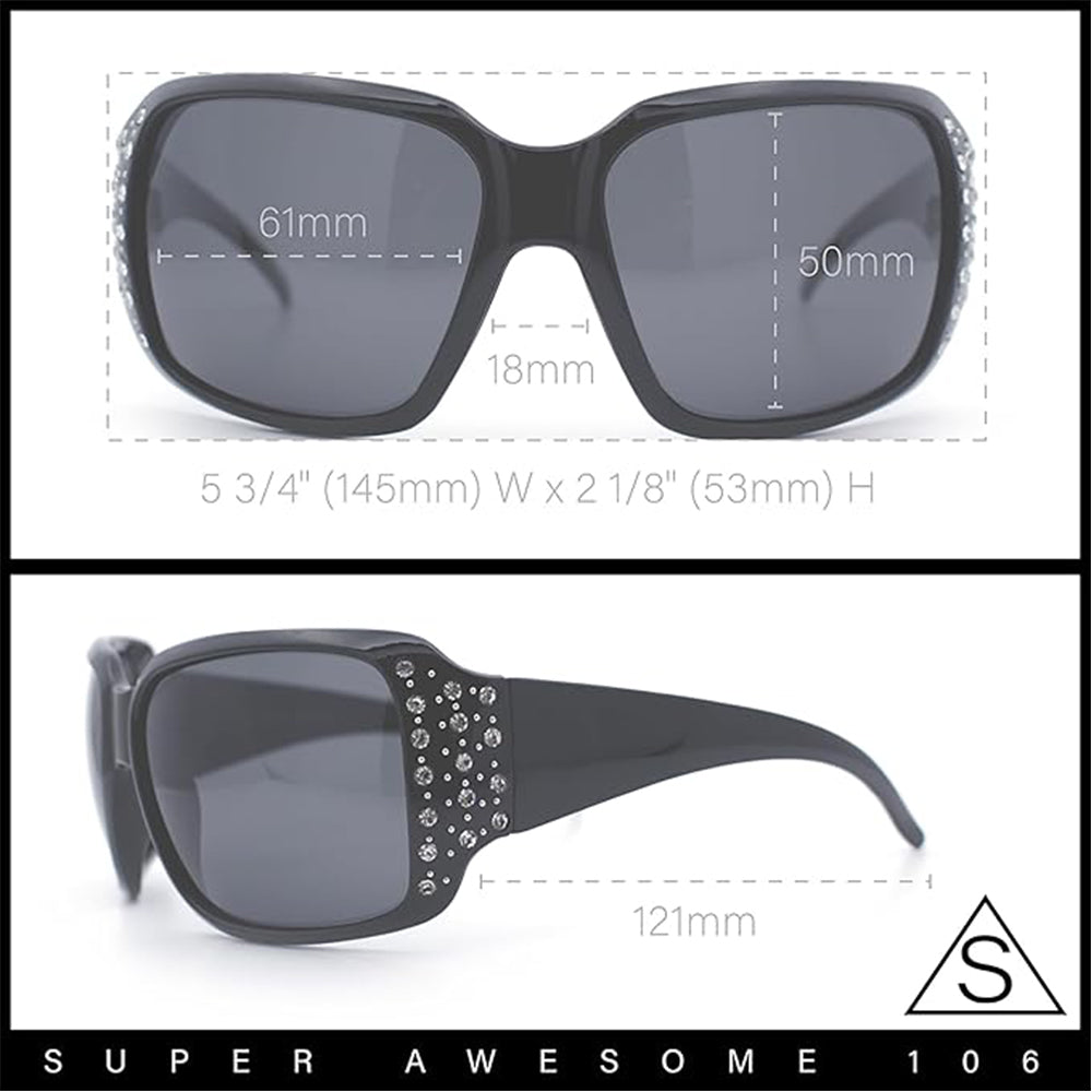 Size: 5 3/4" (145mm) x 2 1/8" (53mm)Premium plastic base frame, and anti-glare polarized 100% UV400 polycarbonate lensesTrendy 90s Normcore Mom Shade!Lens Width: 61mm / Lens Height: 50mm / Bridge Width: 18mm / Temple Length: 121mm