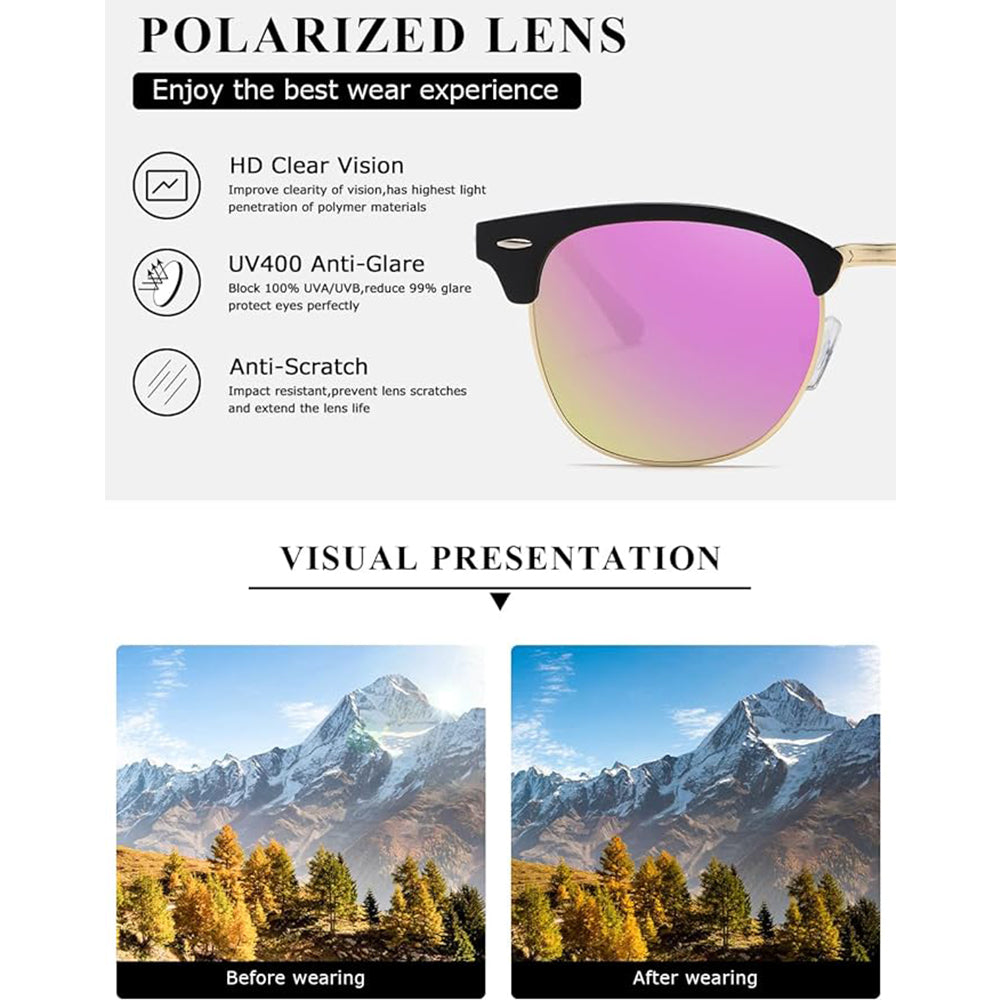 • Polarized Sunglasses for Men and Women Semi-Rimless Frame Driving Sun glasses UV Blocking
